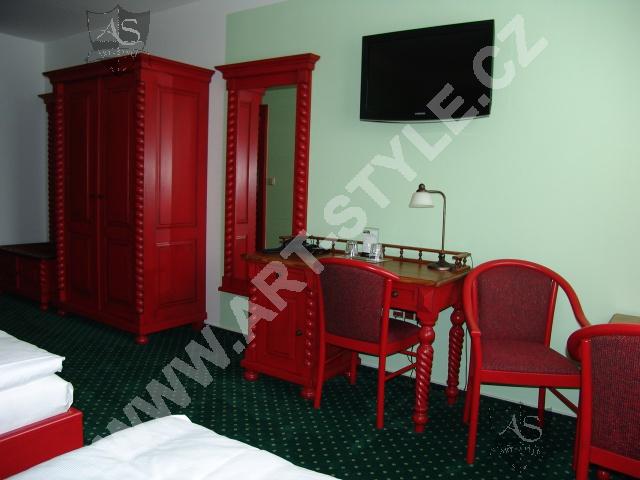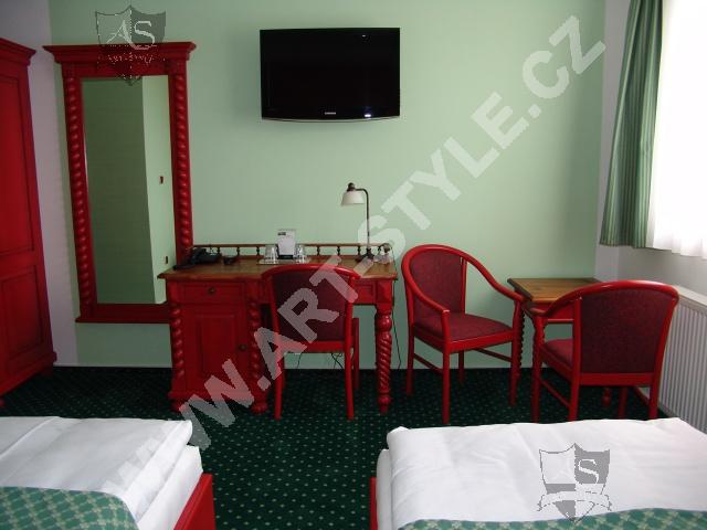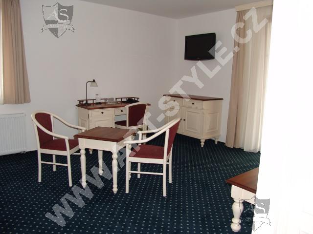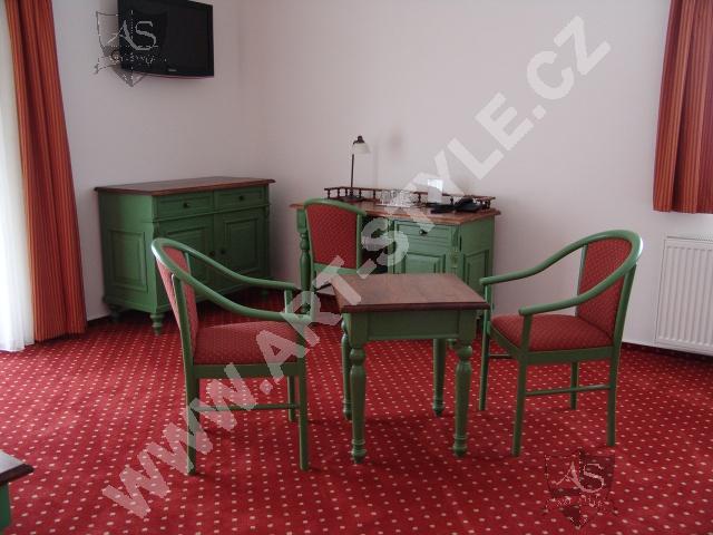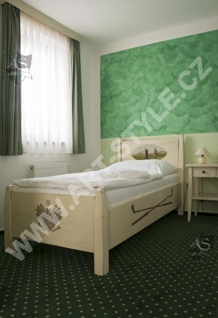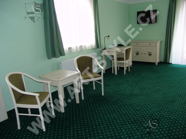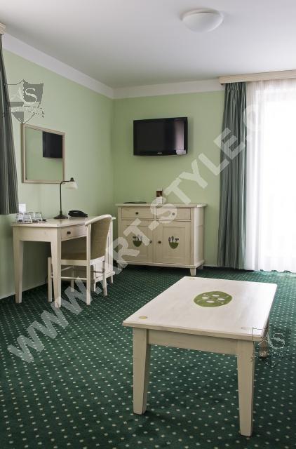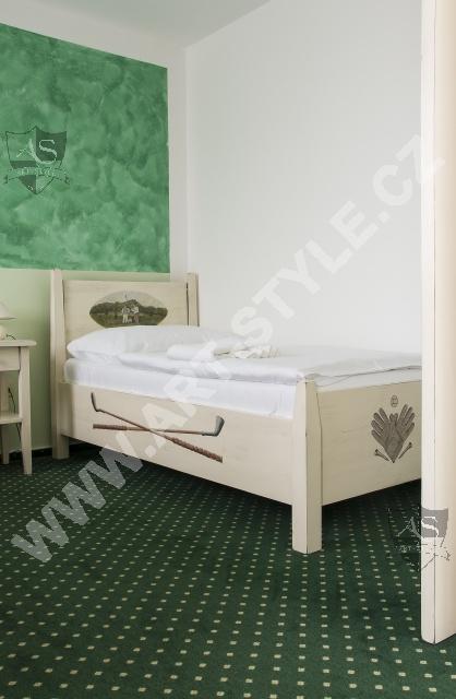 Гольфовый комплекс Кунетицкая гора находится в романтичной природе у города Пардубице. В отеле Гольф-Ресорт находится в общей сложности 33 номера и 8 семейных апартaмeнтов, наша фирма оборудовала третью часть из них. Поверхность мебели была покрыта разными красками, в нескольких комнатах было сделано оформление на мотивы гольфа.