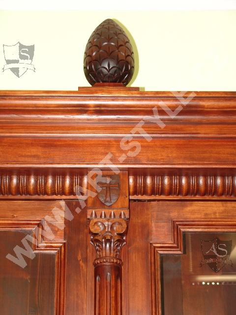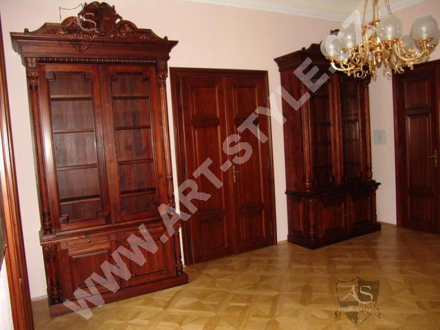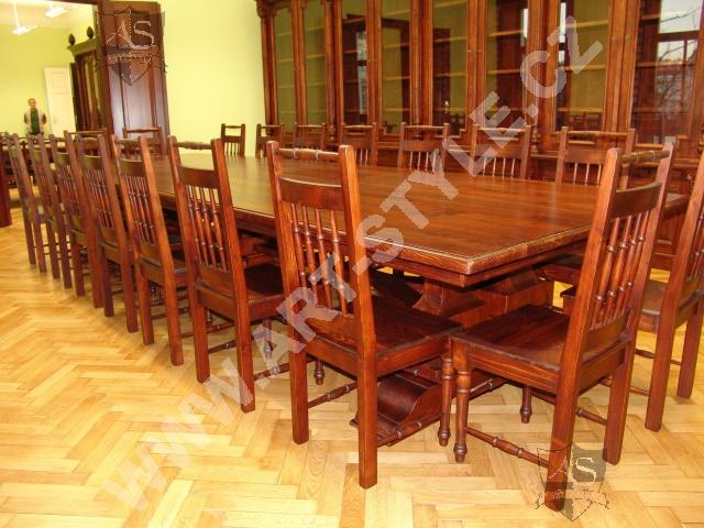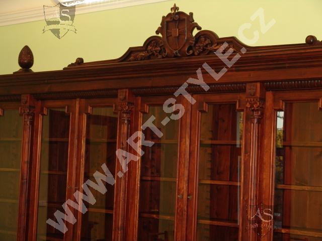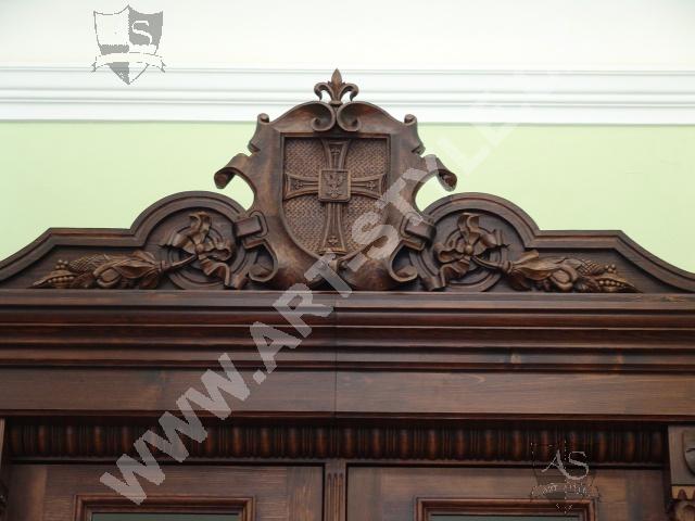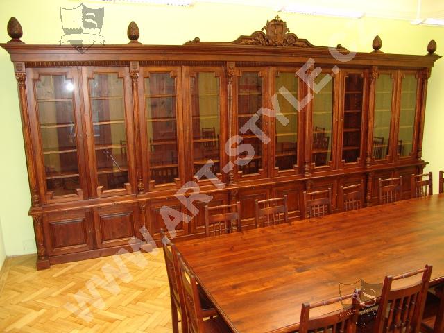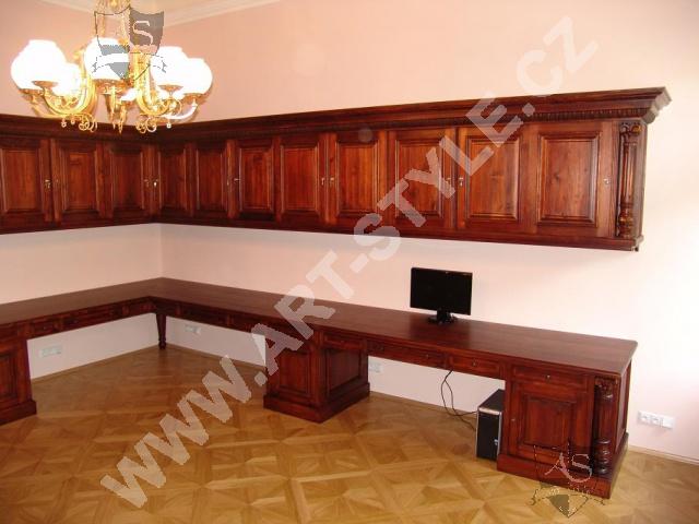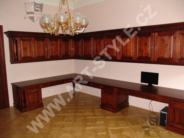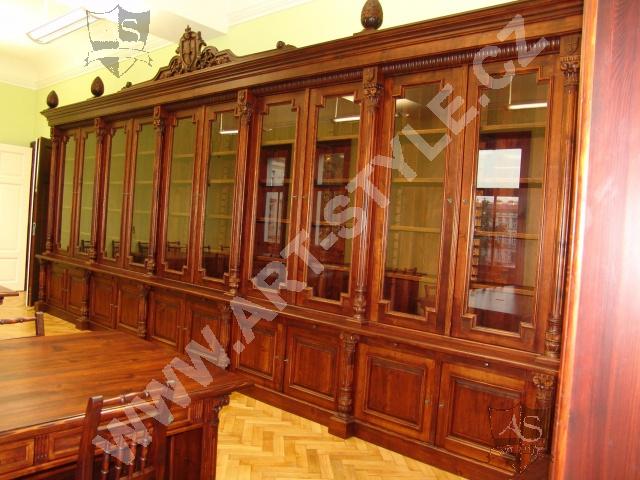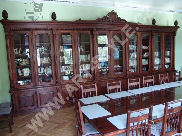 Церковную гимназию Немецкого ордена в городе Оломоуц фирма ART-STYLE оборудовала в соответствии в требовательной заявкой инвестора-два грандиозные книжные шкафа, оформленные вручную вырезанными гербами, стулья, сделанные по предоставленным образцам, стол на 18 персон размерами 3, 6 м длинной и 1,6 м шириной и другие очень интересные и сложные предметы интерьера. Интерьер был дополнен 3 столами для работы на компьютрах, за каждым может одновременно находится 8 студентов.На втором этапе работ инвестор заказал еще 2 дополнительных библиотечных шкафа для административных помещений вместе с большим письменным столом, у которого верхние ящики прекреплены к стене.Все это сделано из елового дерева и покрыто лаком.
