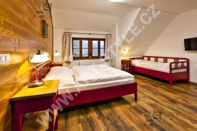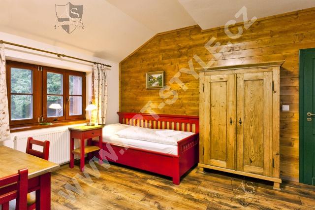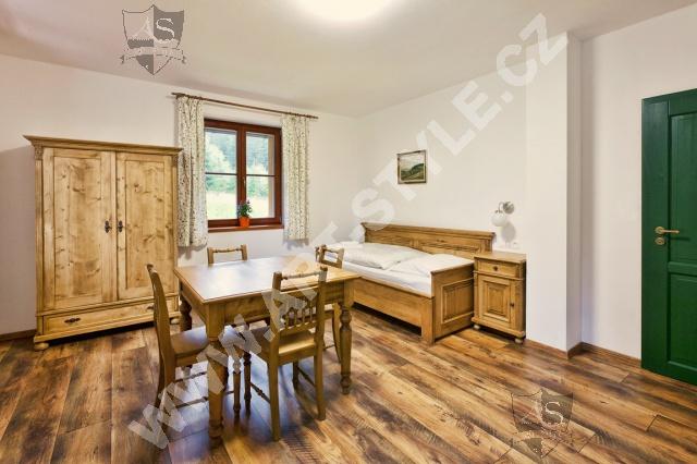 Отель На Mодраве - стильный, недавно построенный отель на Шумаве. Выбирать можете из двух- трех - и четырехместных номеров или четырехместных, или пятиместных семейных комнат, которые состоят из двух отдельных спальней. Отель имеет 56 мест и нашу фирму выбрали как поставщика большинства мебели, оборудования ресторана и бара. Комнаты были оборудованы мебелью из массива разного цвета.