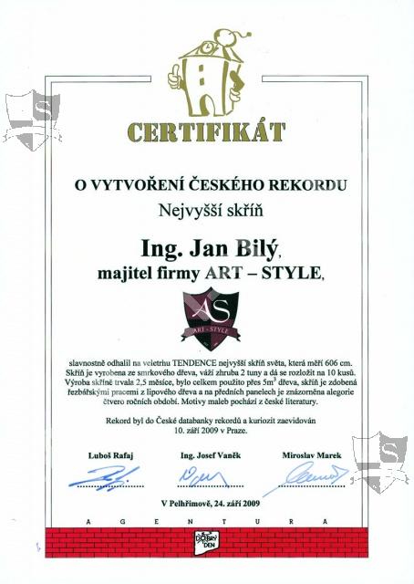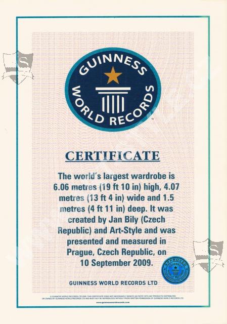Фирма ART-STYLE сделала к 20-ти летней годовщине от своего основания самый большой шкаф в мире и тем самым была записана в Книгу рекордов Гиннесса и в чешской базе данных рекордов. Самый большой шкаф мира был представлен в торжественной обстановке на ярмарке Тенденции в пражском районе Летняны 10 сентября 2009 года и очень заинтересовал широкую общественность в целой Чешской республике.